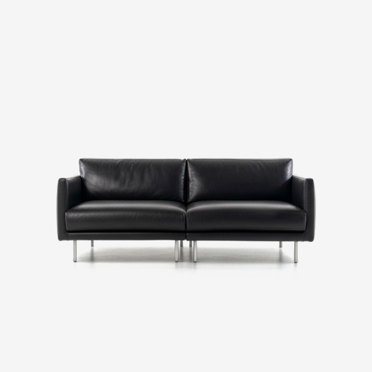 폴사이몬의 레더 컬렉션, EW-401 소파는 미니멀한 형태 속에 절제된 긴장감을 담고 있습니다. 직선형 팔걸이와 등받이는 균형 잡힌 비례로 간결하게 마감되며, 얇고 높은 스틸 다리는 전체 실루엣을 가볍게 받쳐줍니다.